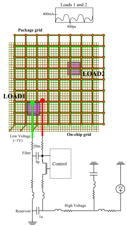gate leakage in sub 100nm processes, on-chip decoupling is seen